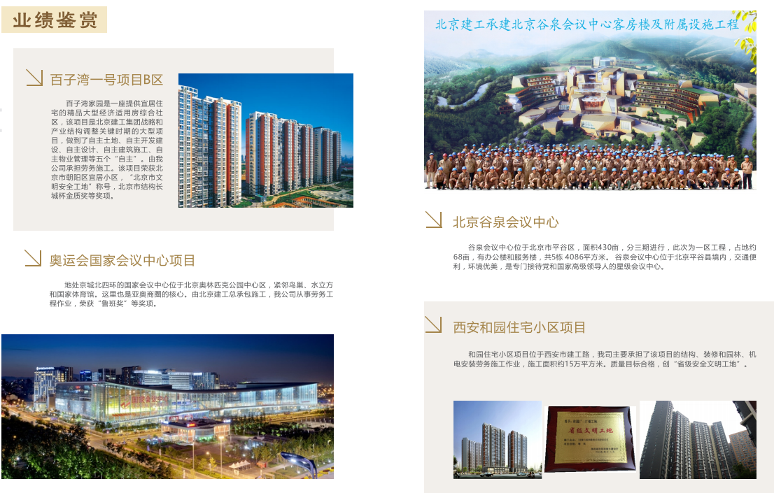 合源建设多年在京及周边地区施工,与中建、中铁,建工城建,住总、新兴城乡、中关村、房修、市政、航空港、以及各区县建筑集团公司等诸多公司有蓿密切合作,近年来在京完成项目有:中华世纪坛工程,奥运会国家会议中心地下工程、北京首都机场3#航站楼、北京国际财源中心东塔楼瑞信国际中心,奥运会羽毛球及艺术体操馆调国家大剧院,天安天地国际公寓、赛欧科技产业大厦凯恒商贸中心、中国农业电视节自制作楼咖西城监狱春守所工程,朝阳区南营房危改雅宝城工程一夕照寺三期危改公安部宿舍楼、六单屯危改小区住宅楼百子湾一号项目B区1#、2#楼、北京电视塔厂佳小区宿舍楼,邮电大学肯年教师公寓,阳光新干线综合楼工程、天坛公园析年殿修细、景山公园修缮、友谊宾馆修缮工程,平安大街,王府井市政管道、二环环路改造、六环路道路工程、丰北立交桥工程、京西污水处理广等众多名优工程,荣获三十余项长城杯、数十项市优工程。
